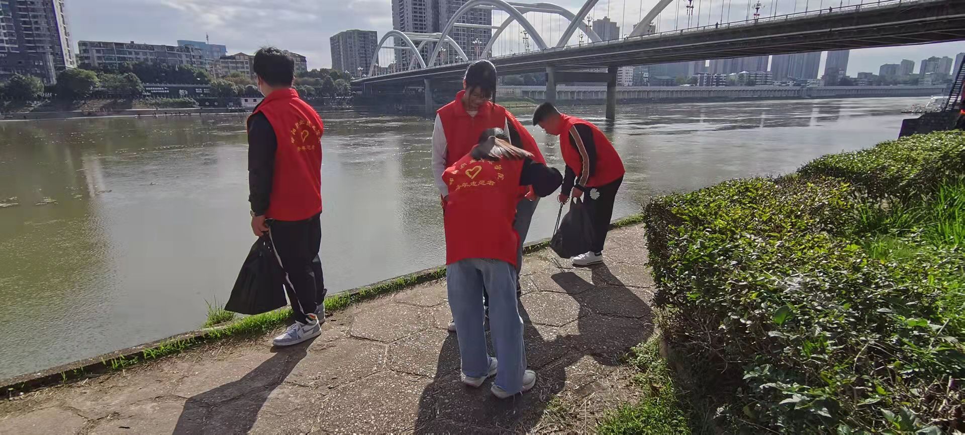 自学院成立“河小青”志愿服务队以来,定期开展河小青巡河护河行动,在梅子井社区、西湖桥河畔、邵水西路等地进行净滩行动,“河小青”志愿者们打对河岸边的白色垃圾、烟头、钓鱼饵料袋、玻璃瓶等进行了清理,大家手持铁夹、垃圾袋等工具,沿着河边对河岸坡面垃圾进行了全面清理,改善了水域环境,美化了河畔卫生。志愿者们配合默契,以实际行动诠释了保护资江环境的理念。