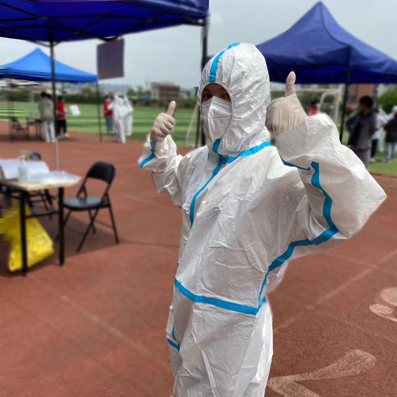 “作为一名青年志愿者,很荣幸能加人疫情防控青年突击队。当穿上防护服的那一刻,我感觉自己是一名神圣的战士,虽说不是在医院等高风险现场参与抗疫,但我仍充满自豪。愿疫情早日过去,我们能走上街头繁花与共!”——信息技术与创意系移动5191班 雷蕾