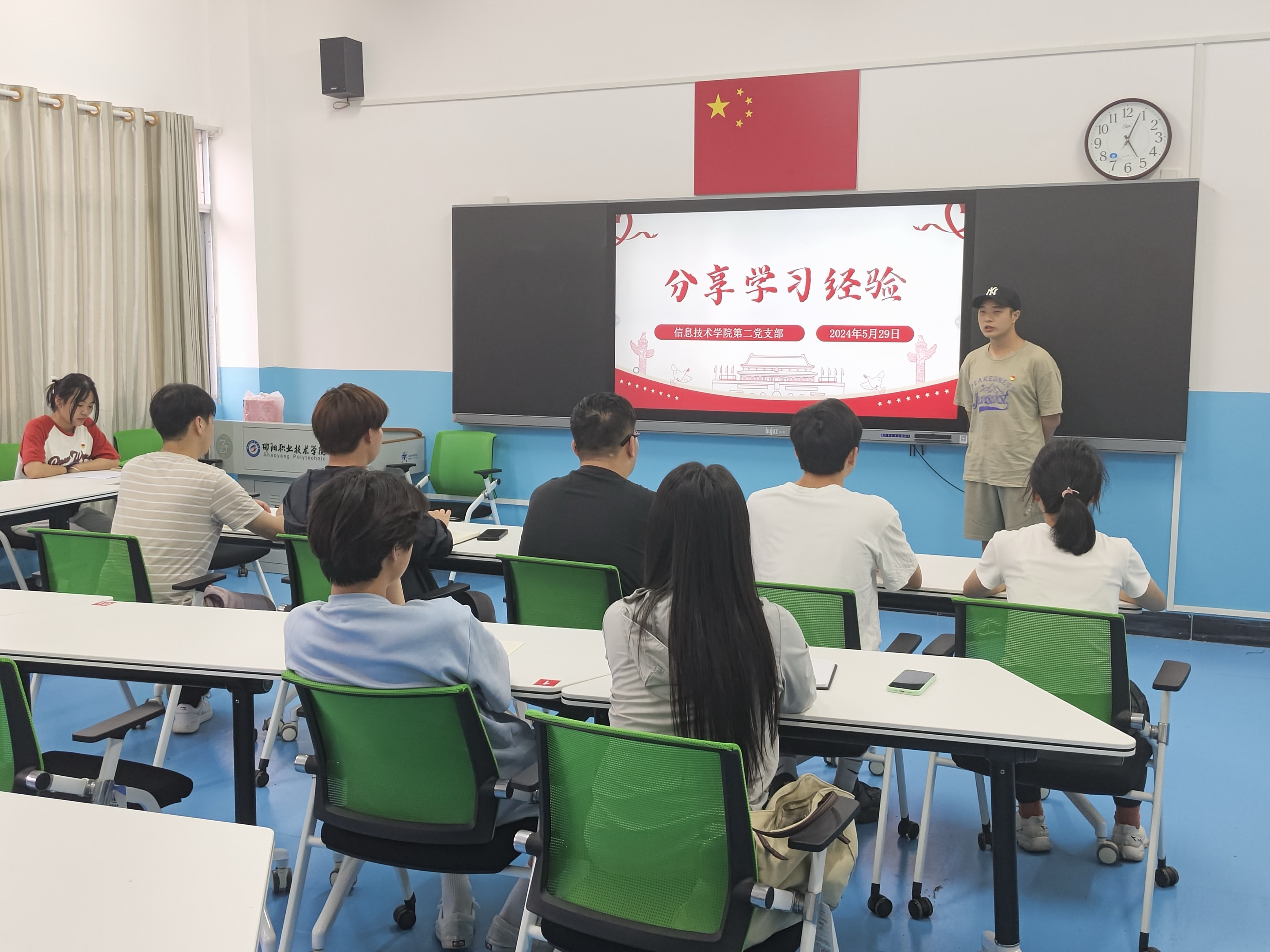 为深入学习贯彻党的纪律,进一步增强党员和入党积极分子的党性修养。2024年5月29日,信息技术学院第二党支部于2401教室举办了一场党纪学习教育座谈会。本次活动由信息技术学院第二党支部主办,支部学生党员蒋笑梅、谭燊进行主讲分享,学院入党积极分子踊跃参与。