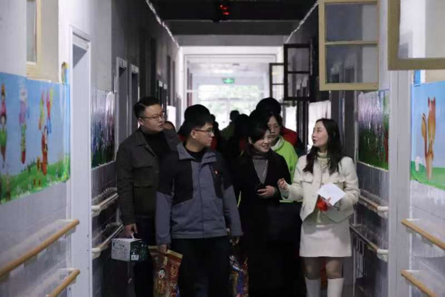 活动期间,在邵阳市社会福利院负责人的带领下,邵阳职院的师生志愿者们及足下公司负责人等一行人共同参观了福利院的生活区、教学区、康复区等功能区,详细了解了儿童区的整体运行情况和孩子们生活、学习以及康复的相关情况。